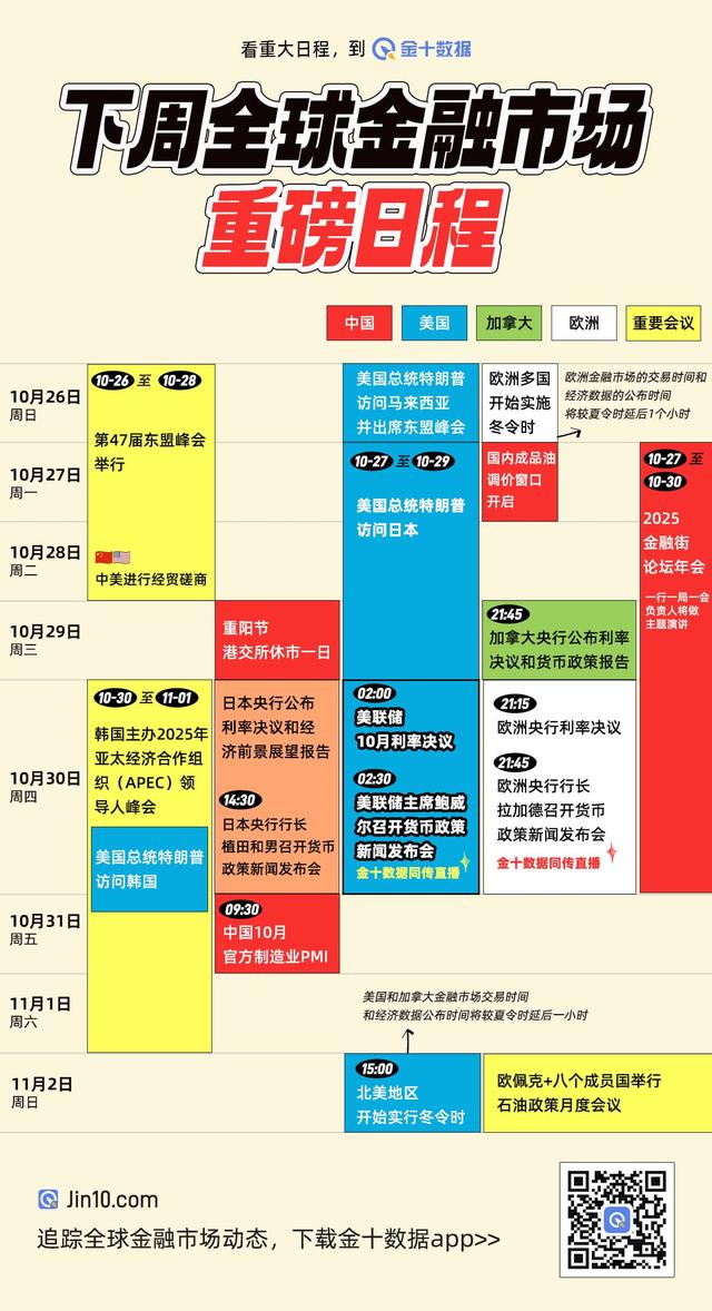 下周“超级央行周”来临,CPI后的美联储10月会议是否再次降息?东盟峰会、亚太经合峰会将接连召开,全球金融市场“脉动起来”!